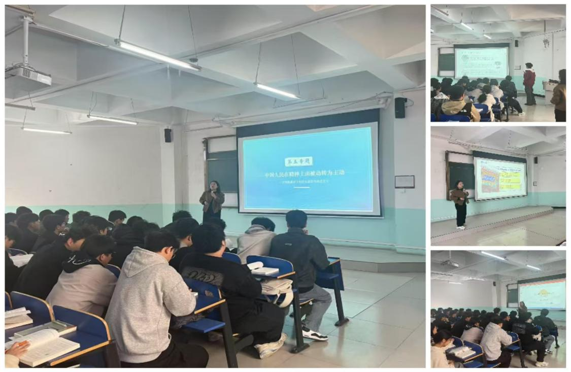 (文/闫方 图/常亦婷)2025 年 4 月 2 日上午,beats365唯一官方网站原理教研室在西校区明德楼南2教室成功举办了一场别开生面的 “纲要” 示范课,主讲人为陈辉老师。此次示范课聚焦“专题五——中国人民在精神上由被动转为主动”,恰似一把神奇的钥匙,开启了深入探寻历史深处精神蜕变的精彩篇章,引得众多教师前来观摩学习。