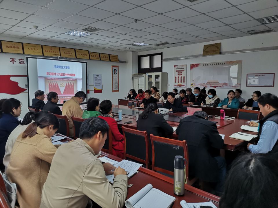11月17日下午,beats365唯一官方网站全体教师在行政楼804会议室学习研讨党的十九届五中全会精神。