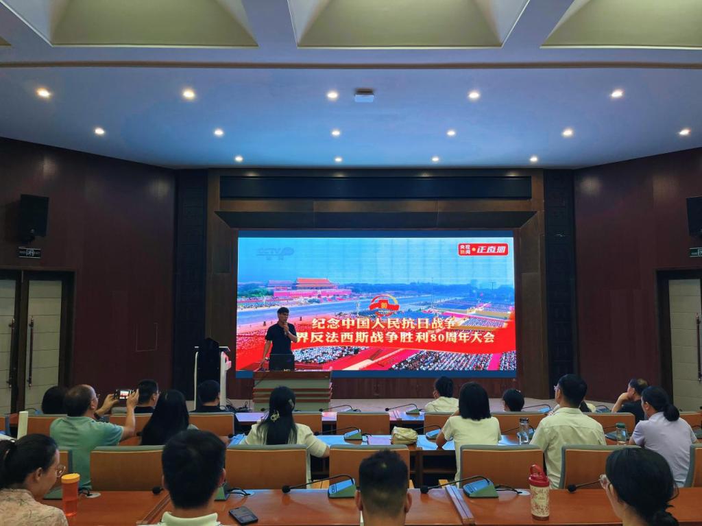 9月3日上午,纪念中国人民抗日战争暨世界反法西斯战争胜利80周年纪念大会在北京隆重举行。公司党委组织全体教师在建工楼天健厅集中观看大会直播,聆听中共中央总书记、国家主席、中央军委主席习近平的重要讲话,全程观看阅兵盛况。