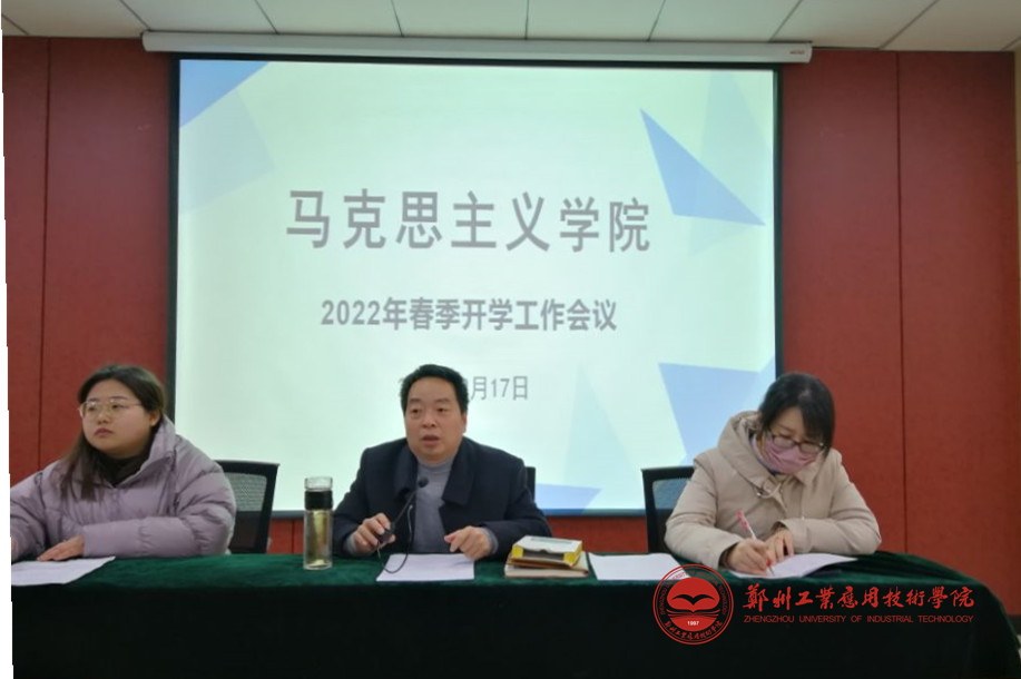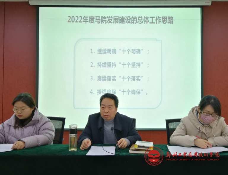 会议首先对2021年马院取得的主要成绩进行了简要回顾,对2021年参加郑州市地方高校思政课教师教学大赛获得一等奖的李伟、宁茜、陈辉等三位教师进行了表彰。