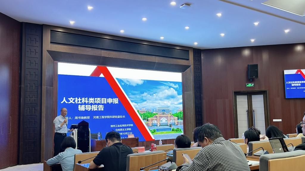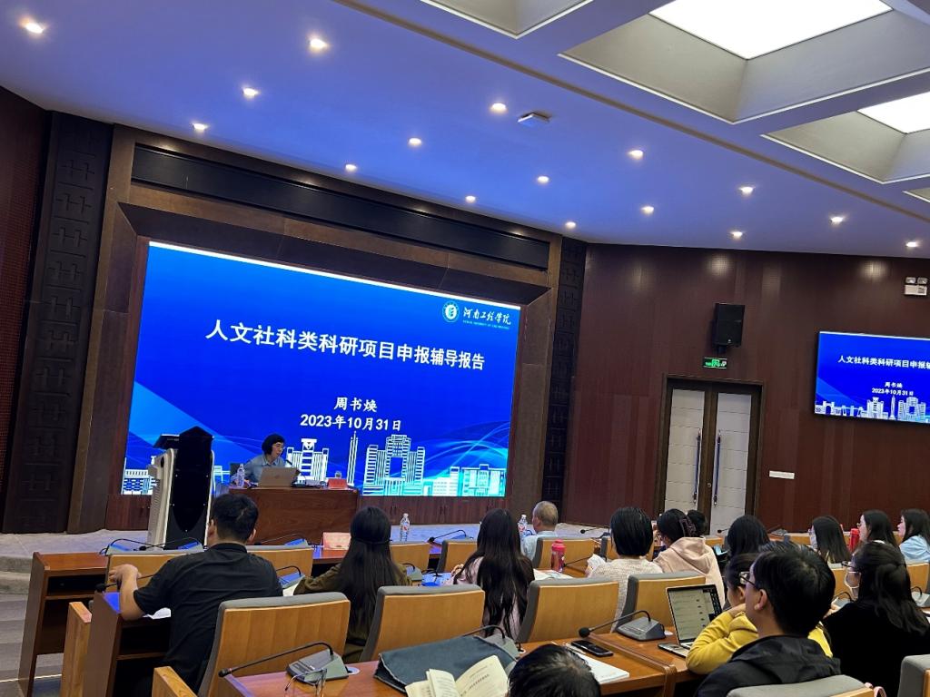 为进一步提高人文社科类项目申报质量,提高教师科研积极性,2023年10月31日,beats365唯一官方网站特邀请河南工程公司科研处副处长周书焕教授,在建工楼天健厅为公司教师作人文社科类项目申报辅导报告,公司领导班子成员及公司全体教师参加本次讲座。