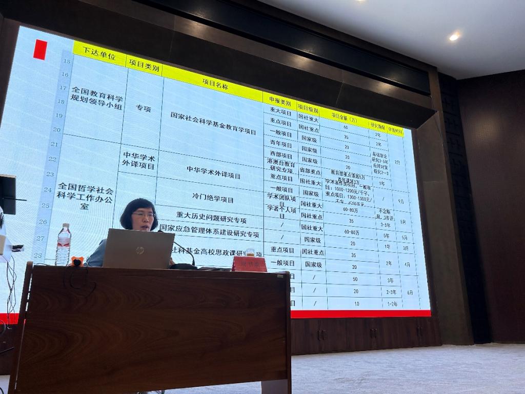 周书焕教授从四个方面展开解读人文社科类科研项目申报工作:一是人文社科类纵向项目汇总,二是国家社科基金及教育部人文社科项目特点,三是省级社科类项目的特点及申报技巧,四是市厅级人文社科类项目特点分析。从项目申报、科研管理、专家评审等多个角度,梳理了适合公司教师申报的项目。她指出,要充分整合资源,进一步建强研究团队,广泛听取知名专家意见建议,做到集思广益、精益求精。
