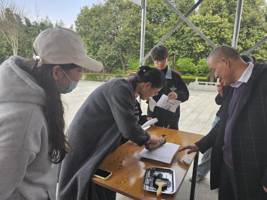 郑国车马坑遗址为春秋时期郑国国君及其家族墓地,据文物部门勘探,该区域有春秋墓葬3000余座,大中型车马坑23座。其中,最为著名的是“中”字形大墓和郑公一号大墓。在这里,同学们体验了沙坑考古和木版拓片项目,亲身体验了考古工作者的艰辛,也更清楚了遗址保护的重要性。
