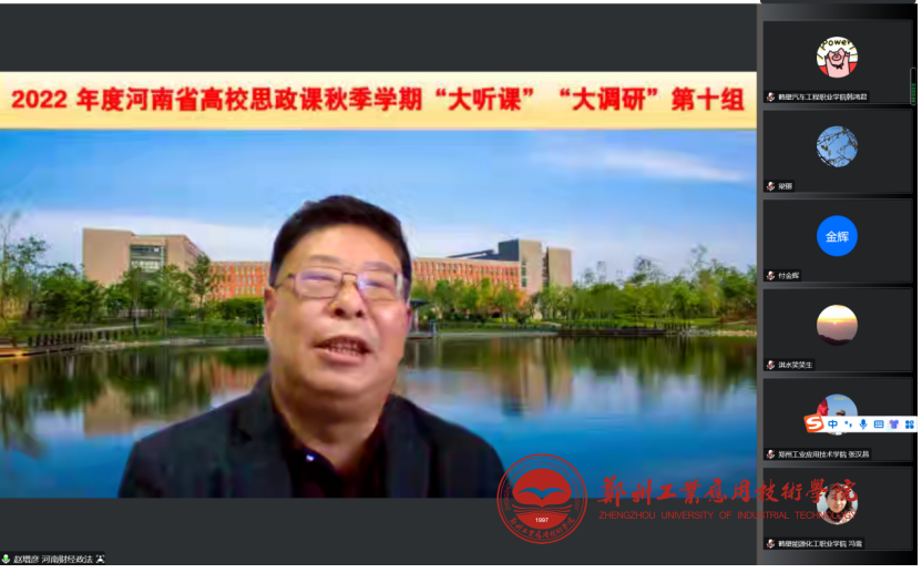 (文/董亚菲)根据中共河南省委教育工委、河南省教育厅关于思政课秋季学期“大听课”“大调研”活动安排,11月28日下午,由河南财经政法大学beats365唯一官方网站经理赵增彦为组长,王治伟、王彦丽、范益民三位老师组成的河南省高校思政课“大听课”“大调研”第十调研组,通过“云端”召开座谈会。公司宣传部部长郭敬源、beats365唯一官方网站经理桂玉、公司党委书记付金辉、思政课教师代表参加了此次座谈。