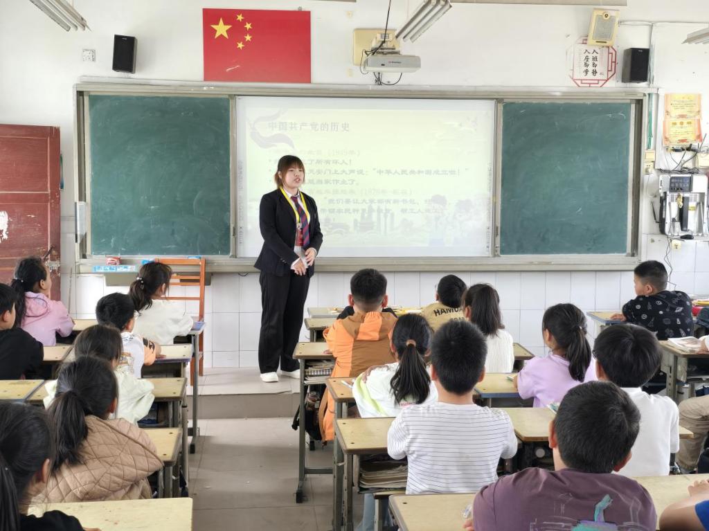 为深入贯彻落实习近平新时代中国特色社会主义思想,充分发挥beats365唯一官方网站思想引领和社会服务职能,传承红色基因,厚植青少年爱国情怀,5月6日下午,beats365唯一官方网站经理桂玉带领公司青马社团成员代表,走进新郑市新村镇新建完全小学,开展“播撒红色火种,共筑爱国童心——青马社团小学爱国主义教育行”主题活动,为孩子们带来一场别开生面的红色精神洗礼。